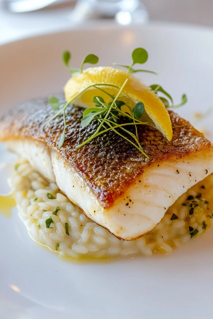 Pan-Seared Sea Bass with Lemon & Herb Risotto